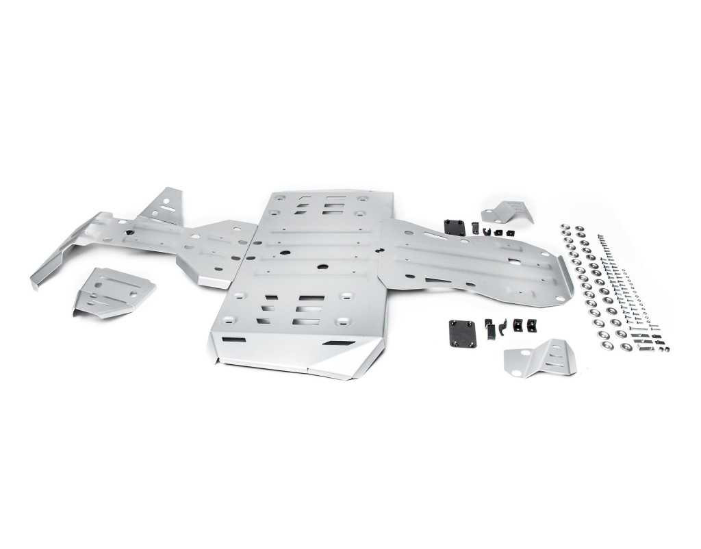 Alumínium haspáncél CFMOTO CFORCE 850/1000 (kétszemélyes) quadokhoz. A precízen megmunkált, nagy szilárdságú burkolat jelentősen javítja a gép védelmét nem csak nehéz terepen.A készlet tartalmazza az alváz és a lengőkarok központi részének burkolatait, beleértve a segédanyagokat is(felszereléshez szükséges csavarok).Lefedi a teljes alváz alkatrészeket, beleértve a karokat is.Eloxált alumíniumból készült. 4 mm.