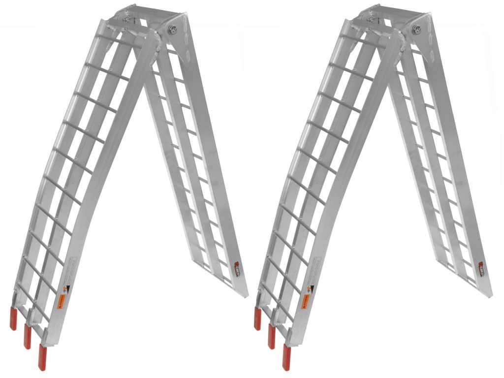 Könnyű és robusztus, hegesztett konstrukció.Karosszéria védelme piros műanyag protektorokkalMűszaki adatok:Hossza kinyitás után: 222 cmÖsszecsukás utáni hossza: 112 cmSzélesség: 28 cm1 rámpa súlya: 6,2 kgMindkét rámpa maximális teherbírása egyidejűleg: 600 kg(Mi is ezt a típust használjuk a CFMOTO járművek szállításakor)
