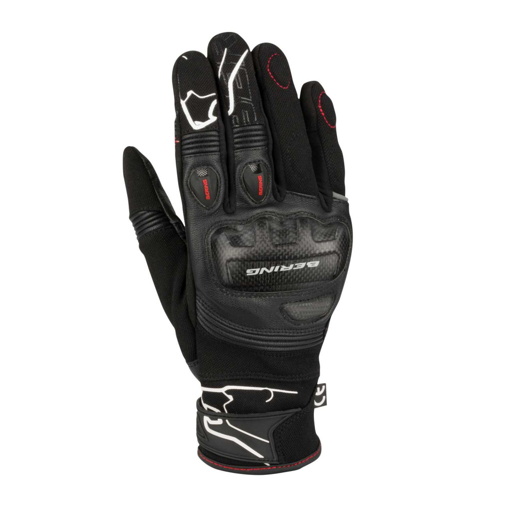 Hálós, nyári kesztyű. Spandex és Neoprén anyagból. Kecskebőrrel megerősítve. Kevlár protektorral. Megerősített tenyérrész, csúszásgátló bevonattal. Csuklónál szűkíthető. Érintőképernyő kompatibilis. Fényvisszaverő betétekkel.